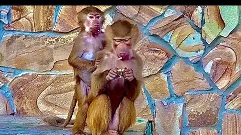 Все гамадрилята ушли в летний вольер и мама Лида СТАЛА СКУЧАТЬ за подружкой Люсей)