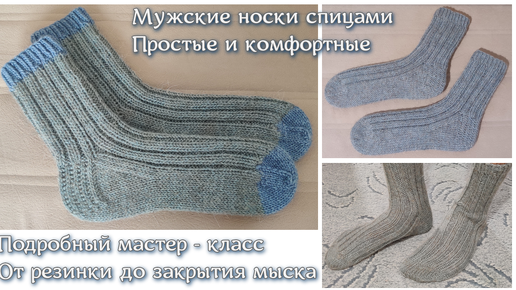 Мужские носки спицами. Простые и комфортные. ПОДРОБНЫЙ МАСТЕР - КЛАСС ОТ РЕЗИНКИ ДО ЗАКРЫТИЯ МЫСКА!