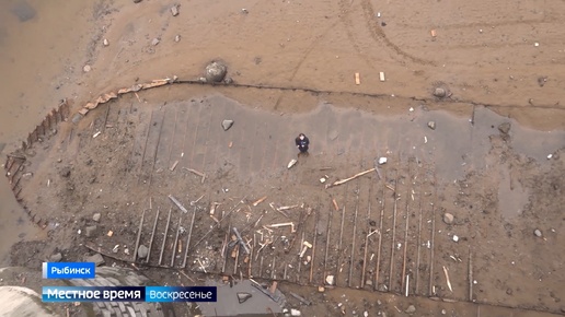 В Рыбинске из-за низкого уровня воды в реке показалось старое затопленное судно