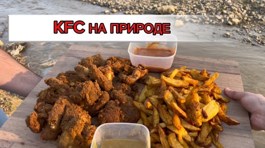 Хрустящие крылышки KFC и картошка по-деревенски на берегу реки
