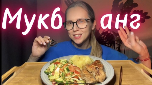Мукбанг/ Ужин, салатИк, курица в соево-чесночным соусом, пюрешка из Столовки ✌️🤓