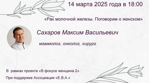Сахаров Максим Васильевич «Рак молочной железы. Поговорим о женском»