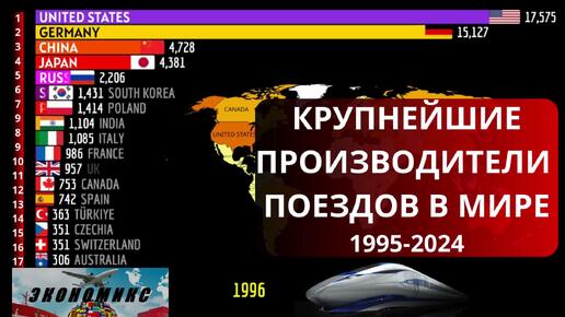 Крупнейшие производители поездов в мире, по странам (1995-2024 г.г.)