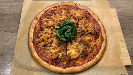 Пицца с фаршем на дрожжевом тесте. Приготовила в выходные к приходу гостей
