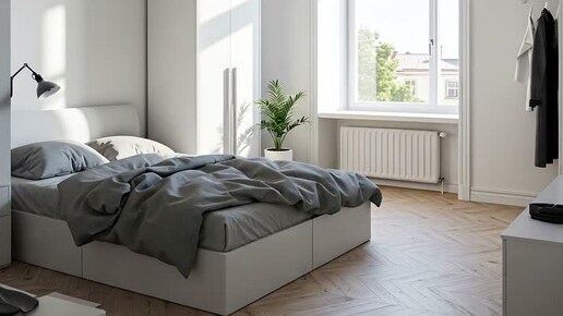 Минималистичная спальня, наполненная светом и гармонией.