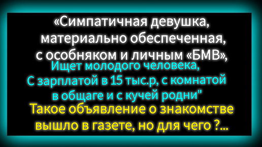 Симпатичная, богатая девушка ищет бедного парня по объявлению, но зачем ей это нужно?