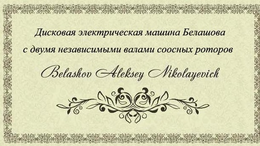 Дисковая электрическая машина Белашова с двумя независимыми валами соосных роторов.