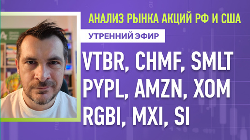 Анализ рынка акций РФ и США/ VTBR, CHMF, SMLT, PYPL, AMZN, XOM/ RGBI, MXI, Si