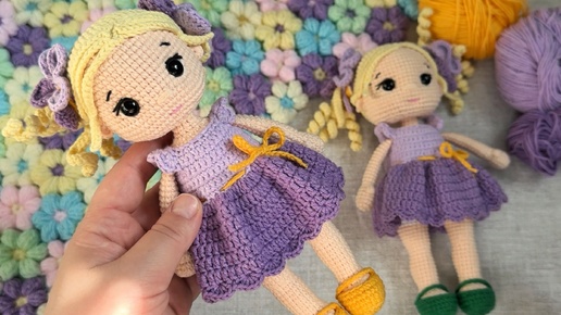 Кукла фиалка // Часть 4 // Вяжем платье, туфли и цветочки //Подробный попетельный мастер класс //