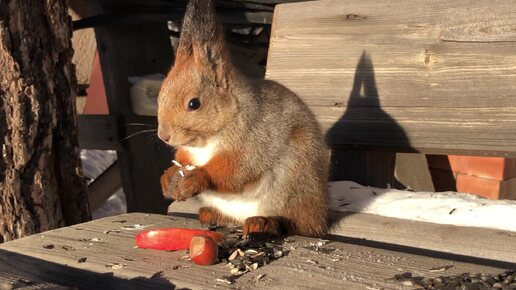 Прибежала такая голодная, что даже на вкусняшки внимание не обратила. #белка