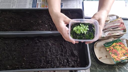 Помидоры только ещё сею, а цветочную уже можно пикировать.