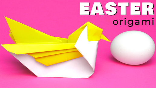Оригами из бумаги «Курица» [Без клея] | Пасхальные поделки своими руками