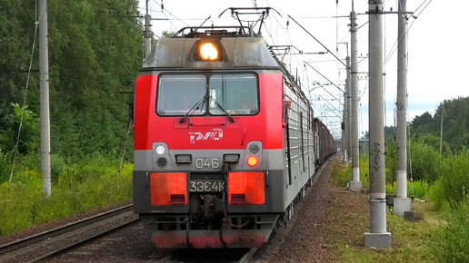 "Догонялки". 2ЭС4К-060 и 3ЭС4К-046 с грузовыми поездами следуют друг за другом