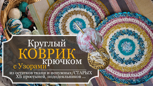Красивый КРУГЛЫЙ КОВРИК с УЗОРАМИ из старых ХБ вещей и остатков тканей КРЮЧКОМ - С НЕОБЫЧНОЙ обработкой КРАЯ - МК