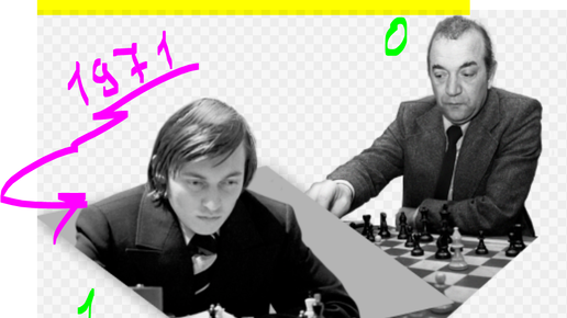 Молодой Карпов тренируется с Виктором Корчным за шахматной доской в Ленинграде, 1971. жертвует за белых качество 21.♖xd5 с победой, 1-0