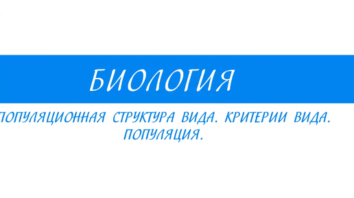11 класс - Биология - Популяционная структура вида. Критерии вида. Популяция