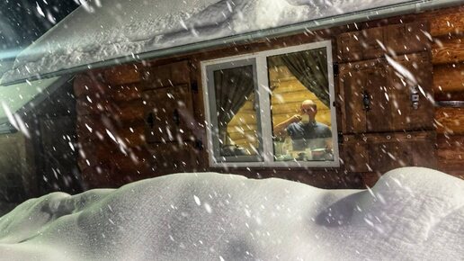 БЕЗ СЛОВ. Провожу два дня в бревенчатой избе во время снегопада. Подкормил пчел.