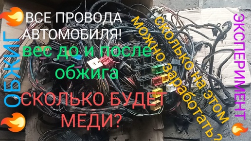 СКОЛЬКО МЕДИ В ОДНОМ АВТОМОБИЛЕ! ПРОВОДКА НА 🔥🔥ОБЖИГ!ЭКСПЕРИМЕНТ! СКОЛЬКО БУДЕТ МЕДИ, ВЕС ДО И ПОСЛЕ ОБЖИГА...
