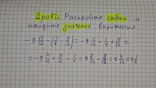 Дроби. Раскройте скобки и найдите значение выражения. Математика шестой класс