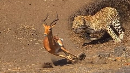 Леопард выслеживает добычу из засады, охота в дикой природе под сингл Перкуссия