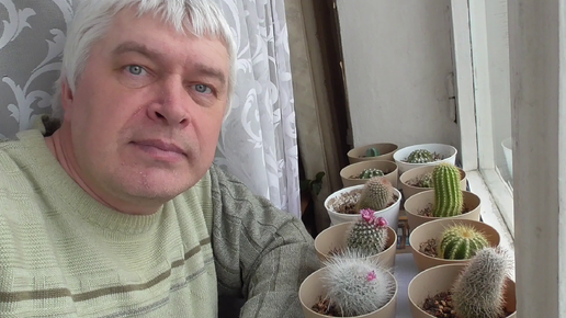 Сегодня 19 марта 2025 год. Видео про кактусы. У меня цветут два кактуса на подоконнике