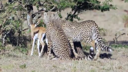 Гепарды игрались с детёнышем Газели пока Бабуин не своровал его под сингл Дым