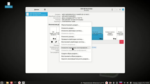 Linux Mint 22.1 Cinnamon, монтирование разделов диска