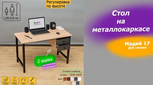 ‼Новинка‼ 🔥Стол с выдвижными ящиками Мадий 17 с регулировкой высоты на металлокаркасе