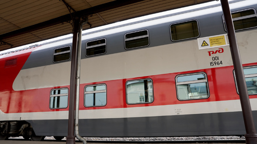 Настя впервые едет на двухэтажном поезде