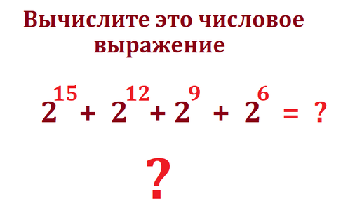 Вычислите это числовое выражение: 2^15 + 2^12 + 2^9 + 2^6