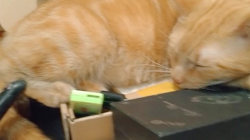 The cat is sleeping in the captured box but I need to gently wake the cat up