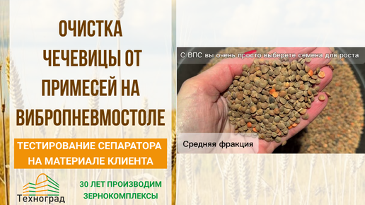 Очистка чечевицы от примесей на сепараторе для зерна
