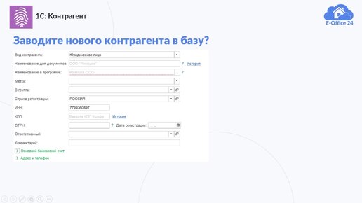 Сервис 1С:Контрагент. Автозаполнение реквизитов контрагентов по ИНН. Быстрая проверка контрагентов.