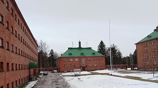 Территория приёмного центра Йоутсено. Слева закрытый корпус, там живут те, кто под стражей. Справа - открытый, свободный вход, выход.