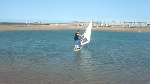 Египет. Хургада. Первые попытки встать на доску под парусом. 2009 год.