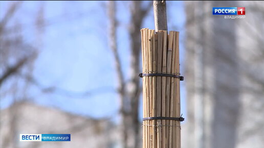 Озеленение Владимира: для чего стволы деревьев "укрывают" тростниковыми матами?