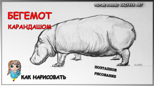 Как нарисовать бегемота карандашом. 2020г. Поэтапное рисование