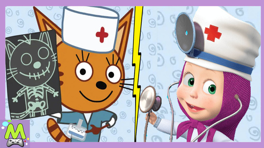Три Кота против Маши и Медведя.Кто Лучше Вылечит Животных.Мультик Игра
