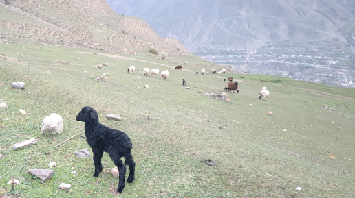 Высоко в горах Балкарии бегаю за появившимися весной во время окота барашками