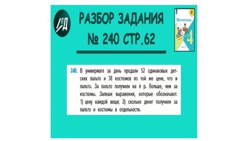 Математика 4 класс 2 часть. Разбор задания на странице 62, № 240