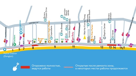 19 марта 2025 - ремонтные работы на пляжной улице Джомтьен на участке «от поворота у пляжа Донгтан – до пересечения с улицей Чаяпрык»