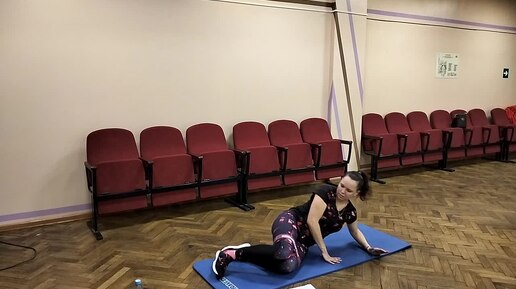 Тренировка на пресс и бедра с фитнес резинкой на коврике