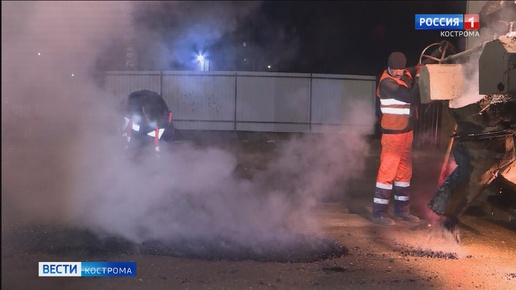 Дорожный ночной дозор заливает ямы на улицах Костромы жгучей 200-градусной смесью