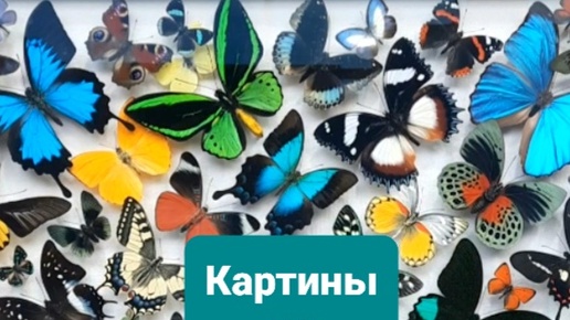 Картины из бабочек и жуков.