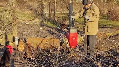Обрезка деревьев в саду окончена - утилизируем сучья...