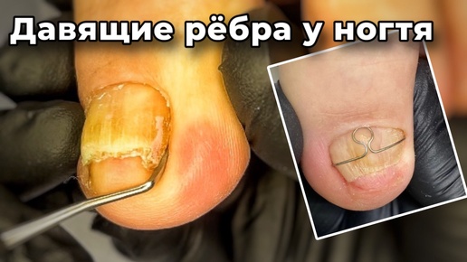 Скомканное ногтевое ложе из-за давящих боковых стенок. Вытянуть всю спрессованную кожу под ногтем