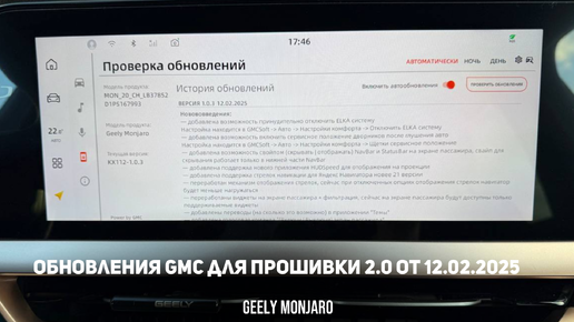 Обновление GMC для прошивки 2.0 мультимедии от 12.02.2025 Джили Монжаро/Geely Monjaro