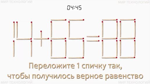 Задача 447. Переложите 1 спичку так, чтобы получилось верное равенство (14+65=88). Задачи и головоломки со спичками.