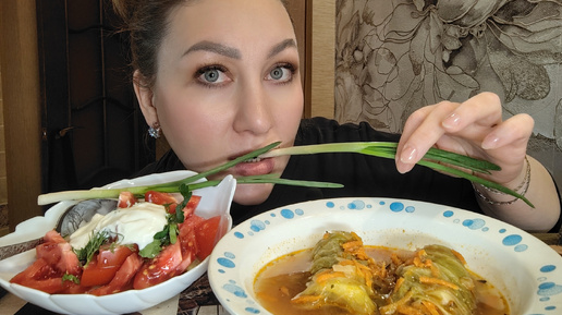 МУКБАНГ/ГОЛУБЦЫ💥САЛАТ С ПОМИДОРАМИ🍅 И СМЕТАНОЙ/О ДЕТЯХ, РОДАХ ИТД, БОЛТАЛКА.