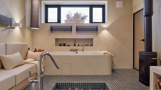 Зона отдыха мечты: предбанник с озером из керамогранита Gabbro
